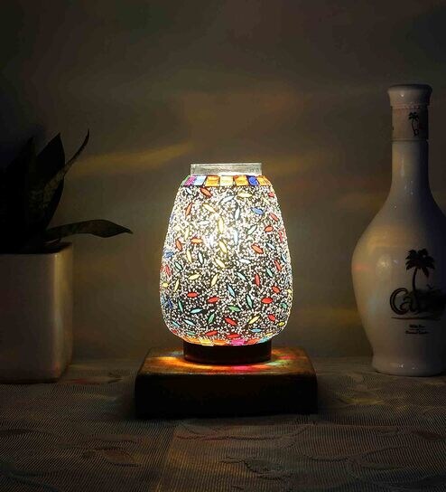 Multicolour Shade Table Lamp With Wood Base