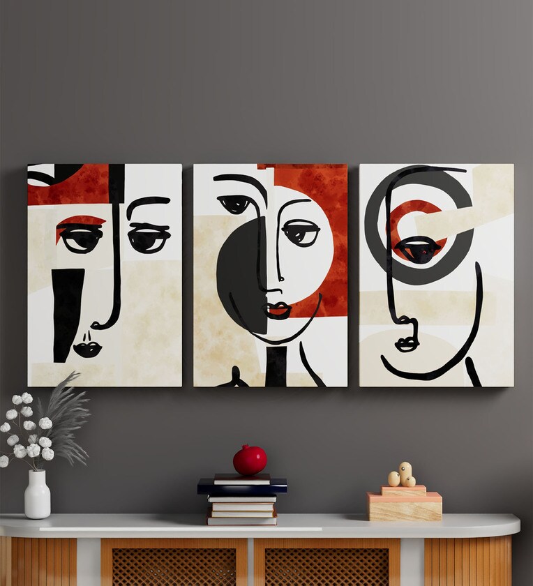Multicolour Synthetic Wood (Set of 3) Art Panels