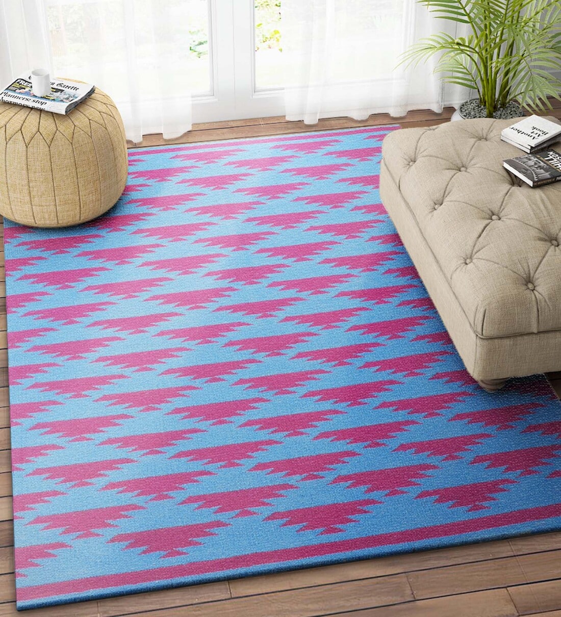 Blue Wool 4 ft X 6 ft Hand Woven Dhurrie
