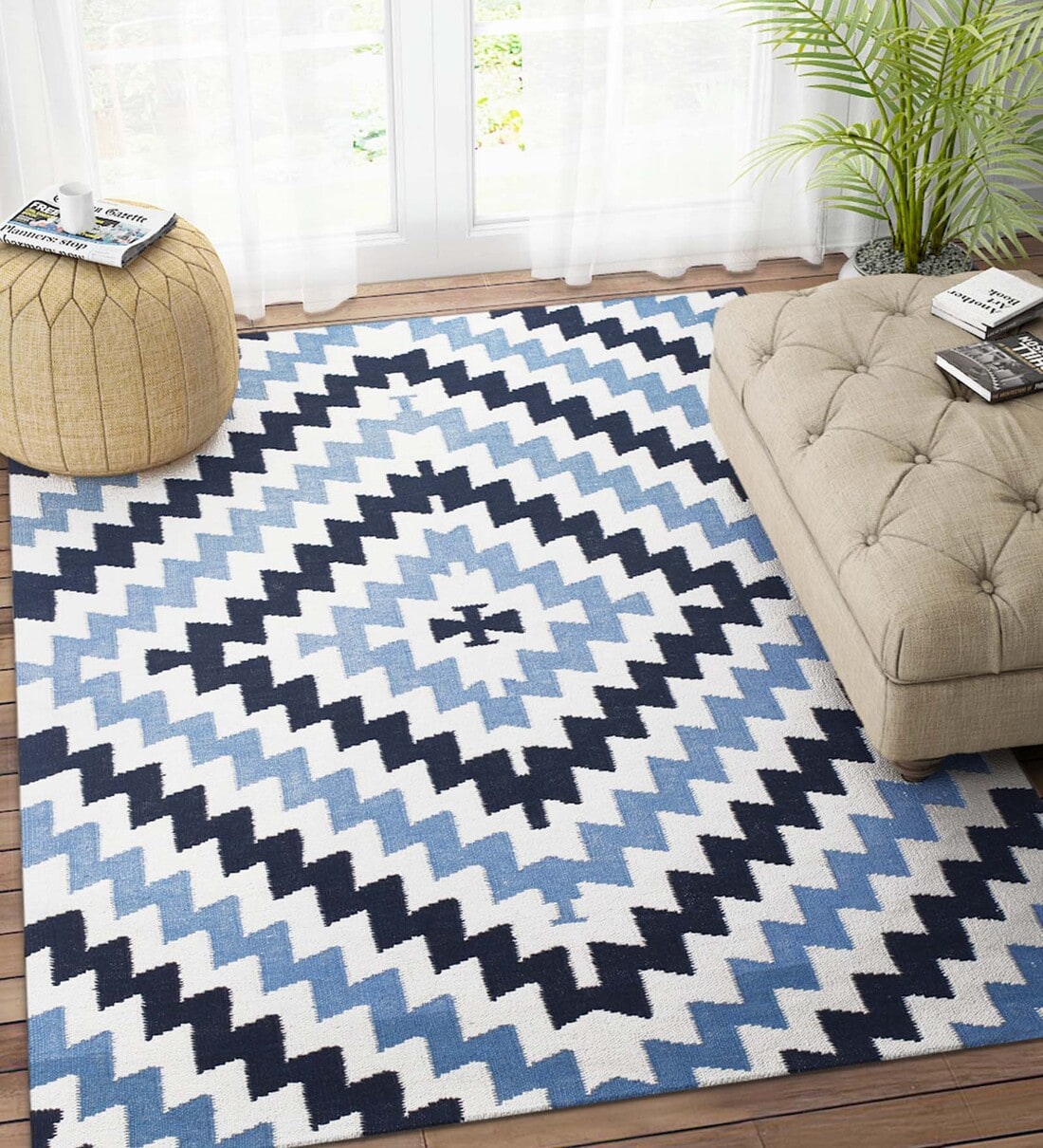 Blue Wool 4 ft X 6 ft Hand Woven Dhurrie
