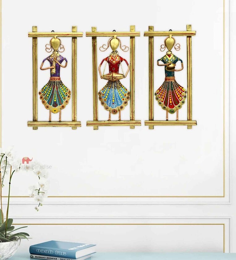 This handcrafted Decorative Wall Decor showpiece helps you to enhance the beauty and charm of your dcor. This product is a must to brighten up your home decor. Every detail matters Clean designs, meticulous craftsmanship, stunning portraits and artefacts, personal touches and colors, and the highest quality materials. Most contemporary and modern design suits your living spaces. The color's of the product may slightly vary. Handmade with Metal the designs are artistically made using best craftsmen techniques. These craftsmen bring generations of traditional art and creativity. It brings positive vibes in the surroundings .The uniqueness and authenticity of each is reflected in small imperfections which are characteristic of handwork. Great gift for your loved ones for Anniversary , birthdays , Diwali , new year .