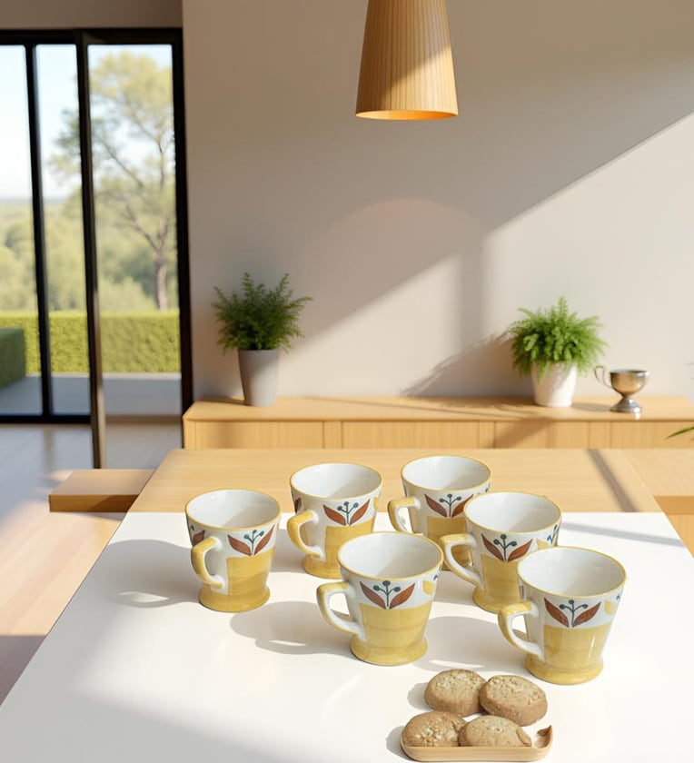 Mustard Bloom Tea Cup Set of 6(160 ML Each) Microwave Safe Coffee Cup.