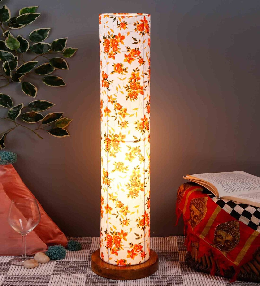 Mylo Multicolour Cotton Shade Column Floor Lamp With Wood Base