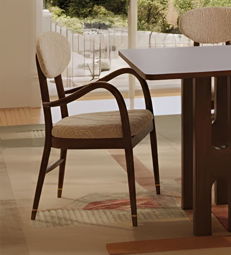 The Naaz Chair is a celebration of artisanal craftsmanship and contemporary design. Its gracefully curved wooden frame is paired with a handwoven seat and backrest, offering both durability and tactile elegance. Compact yet expressive, it adds character to dining rooms and accent corners alike.