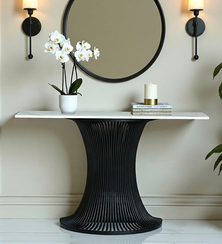 Naldo Metal Console Table In Black Finish With Porcelain Top