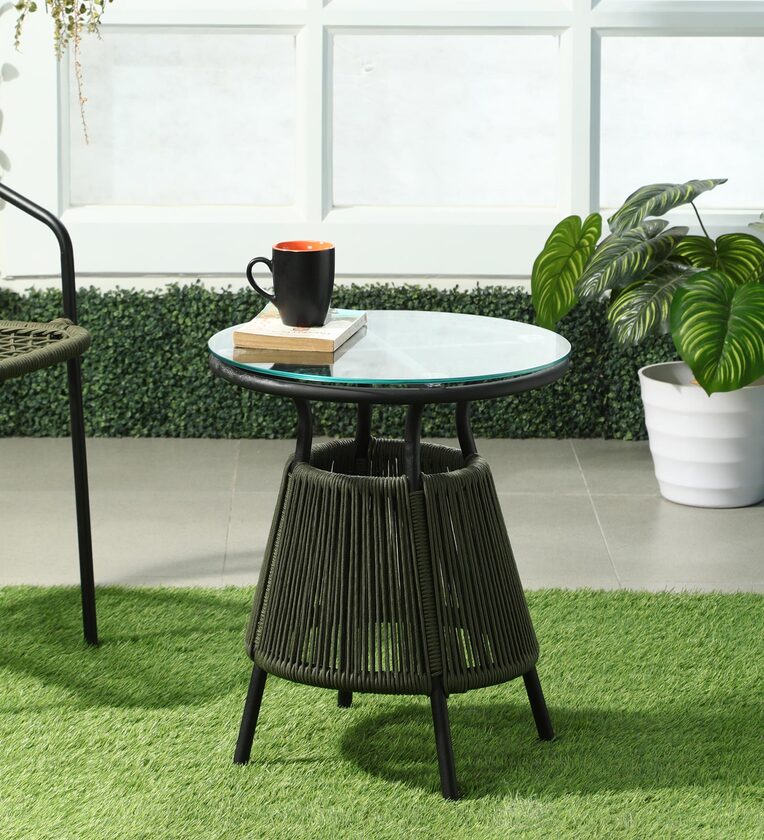 Furniture Material - Mild Steel Powder Coated - Outdoor Rope Weaving - Toughened Glass