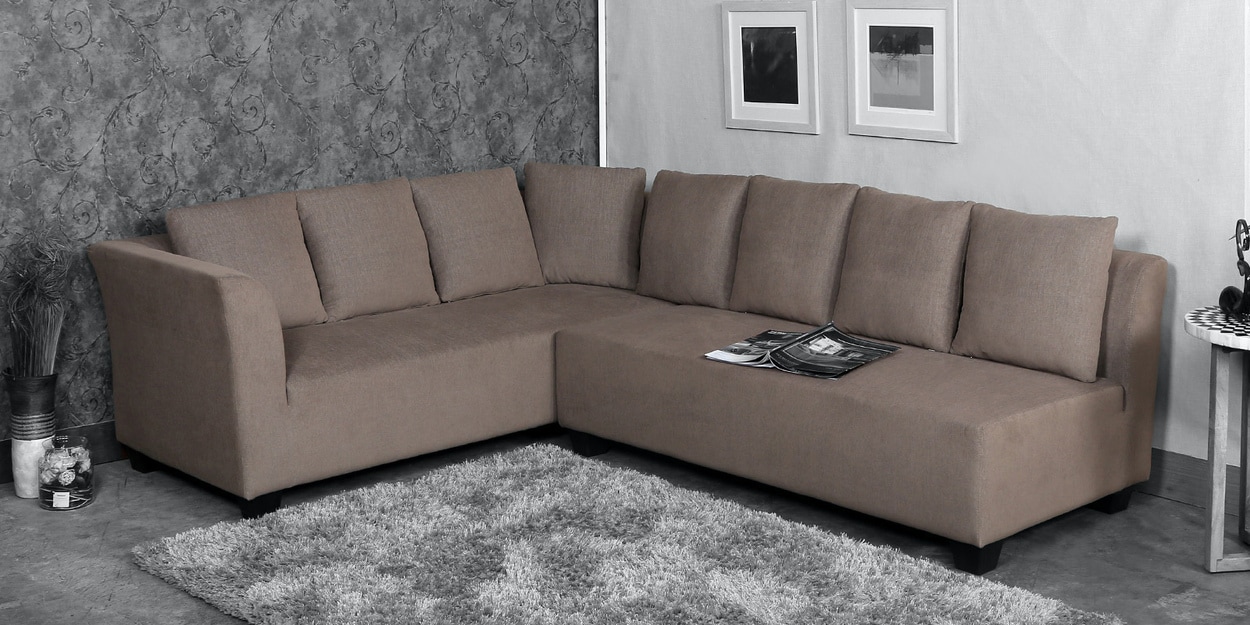 Naples Interchangeable L Shaped Sofa Set with Cushions in Brown Colour