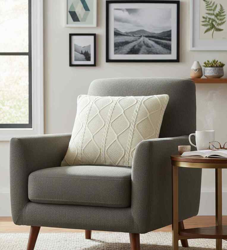 Enhance your decor with Cable Moss Cushion Cover. This beautifully made Textured cushion cover (No Fill Inside) is expertly knitted in 100% Quality Cotton.