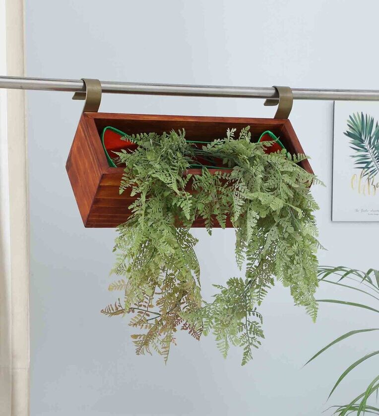 Our unique styled Railing Rectangular Large size wooden planters are just the perfect thing to create your own gardening spaces aka My Edens garden balconies. Can be used both Indoors and Outdoors (Balconies/Patios - partially or fully covered). Perfect for hanging on railings in your balconies. It comes with very sturdy two large hooks polished with antique finish to give that elegant look. We are proud to say that it is a specially handcrafted eco-friendly product Made in India by the finest artisans from Jodhpur, Rajasthan using seasoned / dried pine wood which has been made weather resistant to give you long lasting planter which can stand-by in all weathers. It's made with 0.75 inch thick wood with Length 18 XWidth 7XHeight(depth) 6 and which is deep enough to ensure plants can breathe and grow and have a suitable ecosystem. It is an eco-friendly gardening product especially targeted for urban houses to create your green corner. It comes with strong elevated caps for the feet to protect them from water.The planter comes along with a liner separating the wooden planter wall from soil which gives the planter even more longevity with self-draining holes for excess water to drain out protecting plants from waterlogging. We promise you that you will be thrilled to see your plant in this. With wood, earth, water, greenery and space, this unique product offers all-natural aspects coming together and fulfilling your life. Do check out other products in our catalog which also targets for beautifying indoor spaces with elevated beds, hanging baskets, colorful table-tops to suit your decor, railing planters etc. And yes, dont miss out Mythical Tulsi Planters ?? Link here. Disclaimer: The grains, color of wood or weather resistant finishing may slightly differ from the picture on displayed above. Some wood pieces may also have a natural hole which is the pith of the tree (innermost circle). This will not harm or affect the planter in any way. The planters are specially curated with loads of love and we have tried to maintain its natural beauty as much. You may find black/brown/white patches sometimes which are all natural pine wood and we have retained all that. Please check the products dimension prior to ensure it will fit your available space/location of your choice. Please expect an unevenness of 5-10 mm in the product due to differences in surfaces and floor.Details: Material: Seasoned (dried) Pine WoodShape: RectangleSize: Length 18" x Width 7" x Height (Depth) 6" Item Weight: 2 KgMounting Type: Hanging on RailingAssembly Required: Yes (Screws and Hook to be fitted)Brand: My Eden Country of Origin: IndiaNumber of Pieces: 1Style: Contemporary & ModernAccessory: Liner Bag