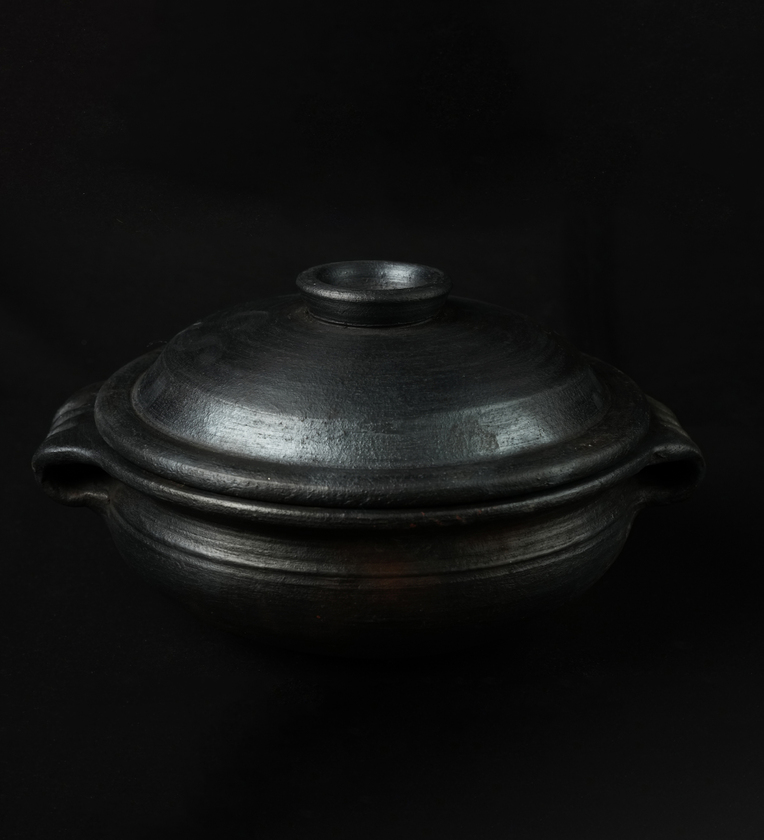 Natural Hand Made Pre Seasoned Blackened Clay Uruli Small Size (Medium) (9 Inch)