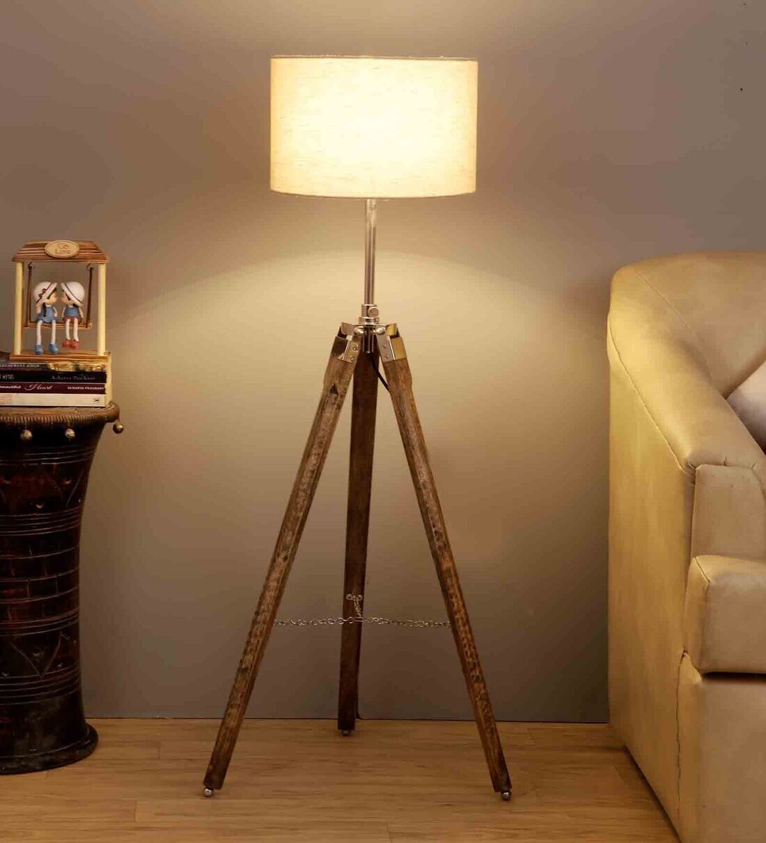 Natural Linen Shade Floor Lamp With Silver & Grey Base
