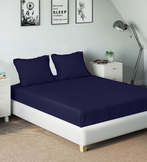 Navy Blue Solid 210 TC Cotton Single Bed Sized Bed Sheets with 2 Pillow Covers
