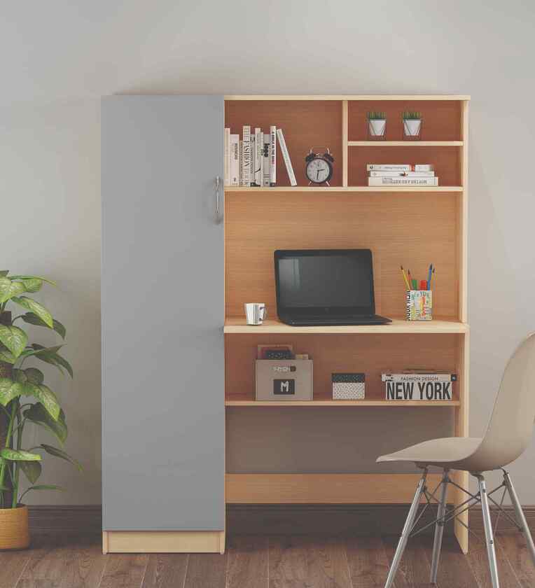 Compact Sturdy structure and ample storage space makes this table a perfect option for home office or study. Multiple shelves, including both open and closed options, provide additional storage space and easy access to items within arm's reach. TCompletely knock-down construction and will be assembled by our expert. Made from high durable Engineered board this product is termite and water resistant as well. TIt is made from highly durable engineered wood and will give you a strong & sturdy, stylish study table to last you for years to come.