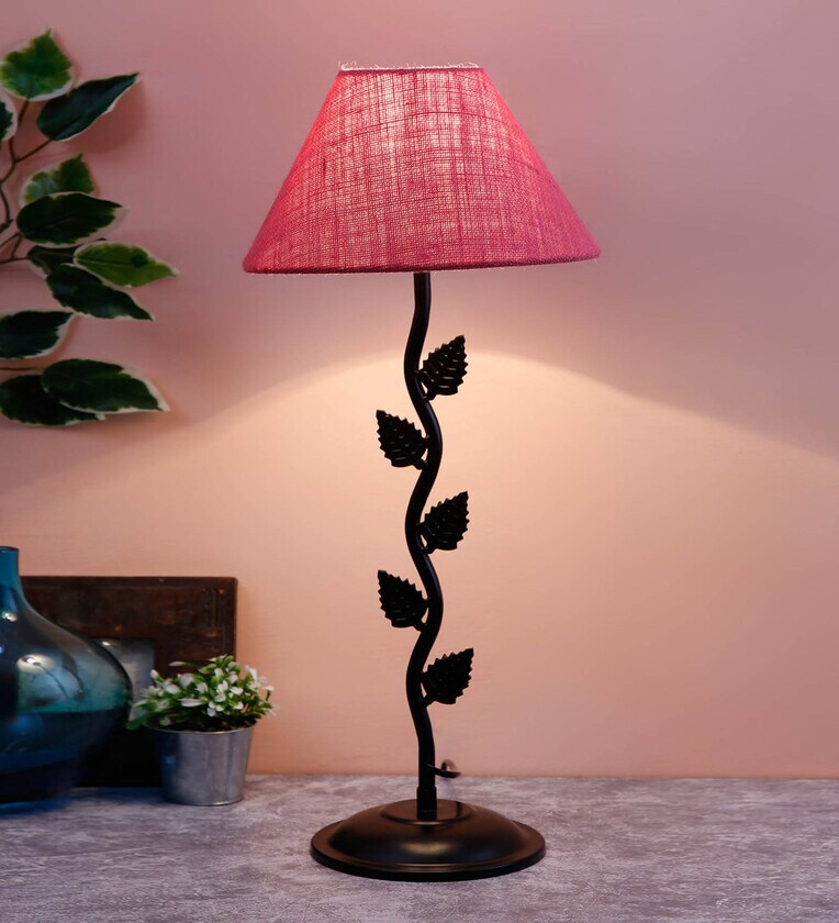 New Era Pink Jute Leaf Table Lamp