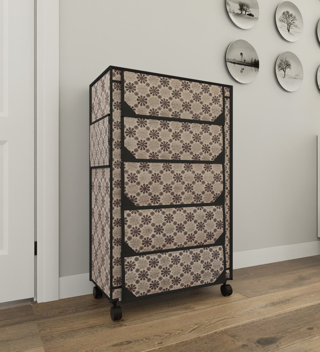 Nexa 5 Tier Shoe Rack With Wheels In Floral Print Finish