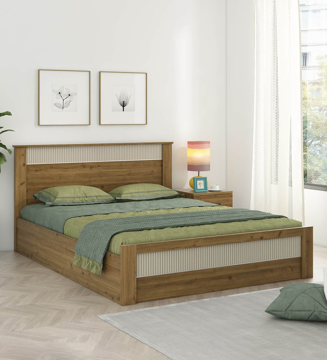 Nexon Queen Size Bed in Classic Oak Melamine Finish With Box Storage