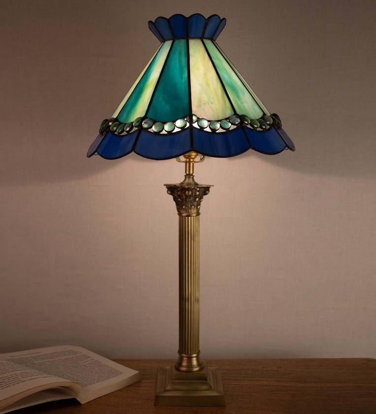 Nirvana Nug Blue Stained glass Shade Table lamp with Antique gold Base