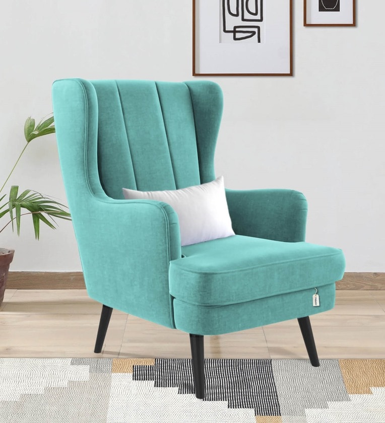 Niya Velvet Wing Chair In Aqua Blue Colour