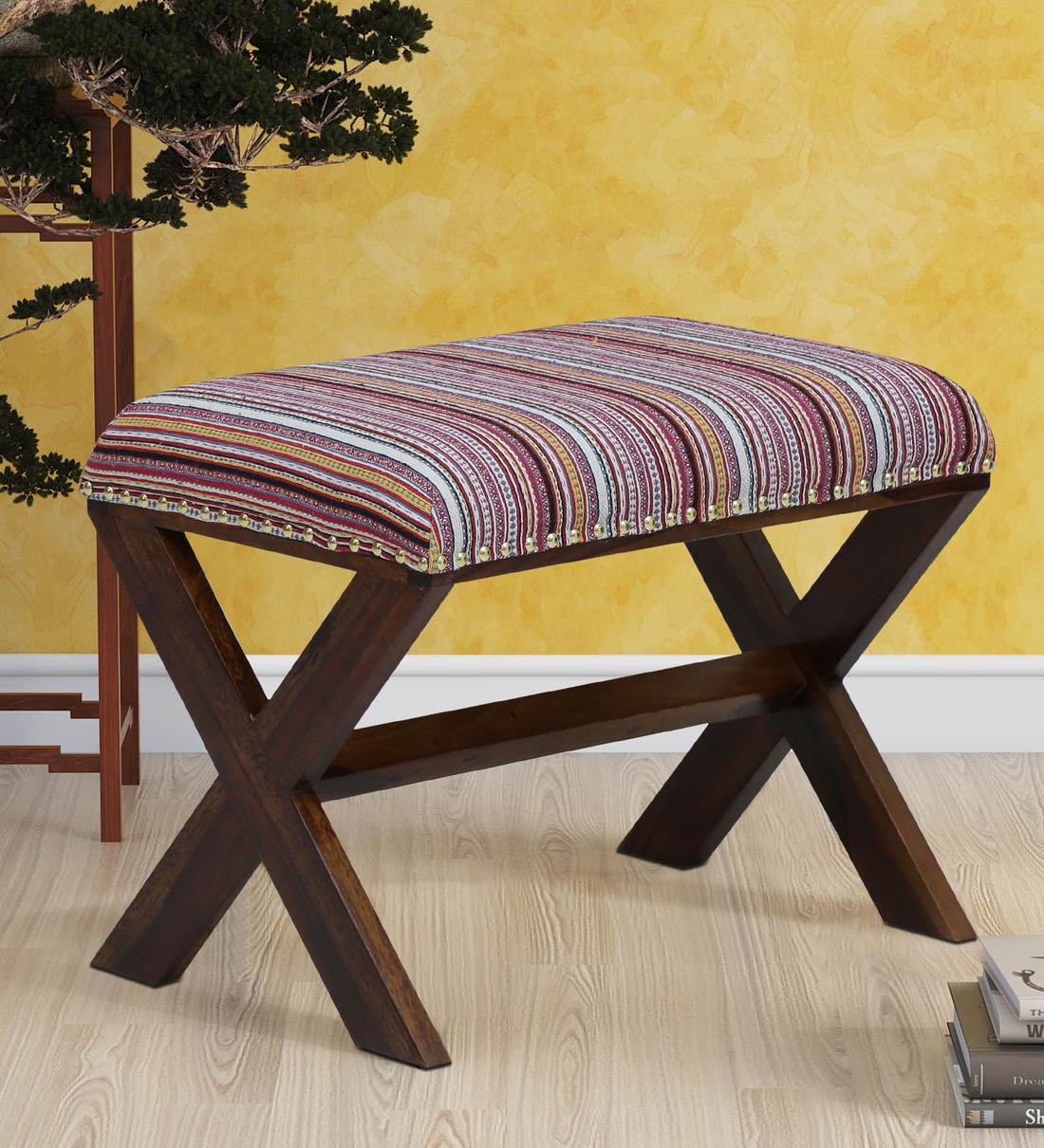 Noah Fabric Seating Stool In Provincial Teak Finish