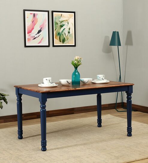 Noyes Sheesham Wood 6 Seater Dining Table In Blue & Natural Finish