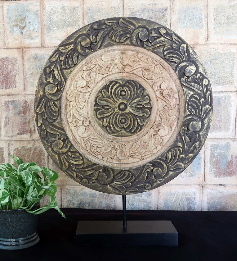 Object Disc- Large Mango Wood & Iron Table Accent Piece