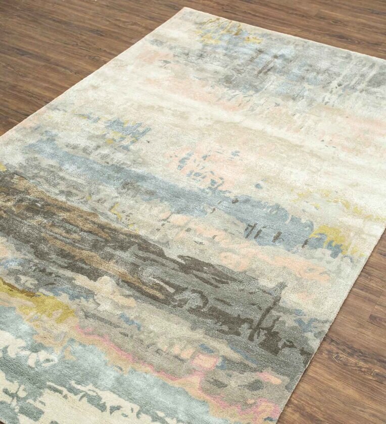 Off White Abstract Wool 5 ft x 7 ft Hand Tufted Carpet