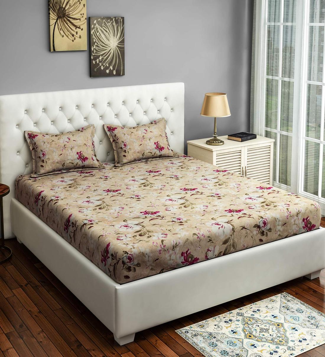 Off White & Cream Floral 240 TC Cotton Satin Double Size Bedsheet With 2 Pillow Covers Swayam Zinnia Collection