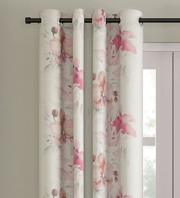 Off White Floral Jute 9 Ft Light Filtering Eyelet Door Curtain