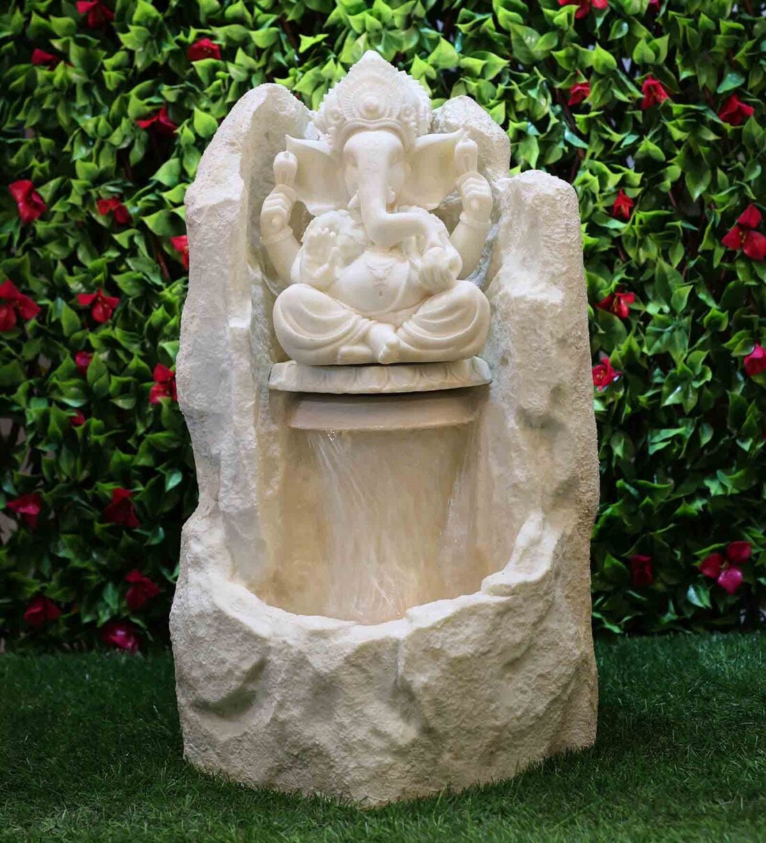 Off White Ganesha Sand Stone Indoor Water Fountain