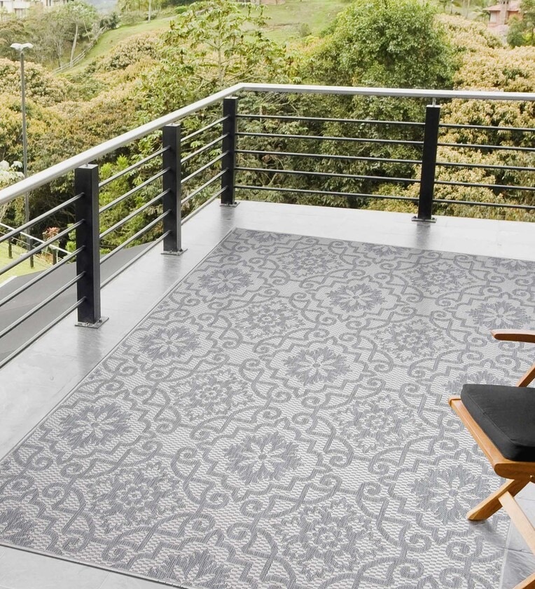 FLORIDA Outdoor Indoor area rug DOVE - 810 X 67. Beautifully crafted rug for your living room, patio , balconies , veranda and outdoor space. Versatile flat woven construction using premium polypropylene yarns. Manufactured using Belgian technology on Wilton looms. Easy care. Water resistant, does not smell due to absorption of water during rainy seasons. Quick Dry.