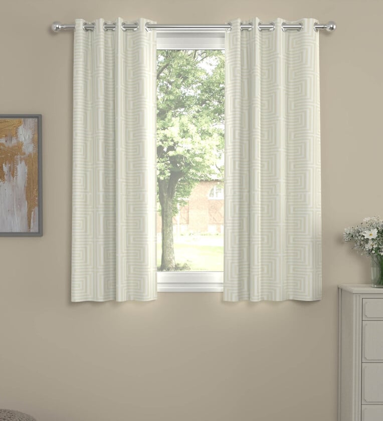 Off White Polyester Abstract 5ft Semisheer Eyelet (2 pc) Window Curtains