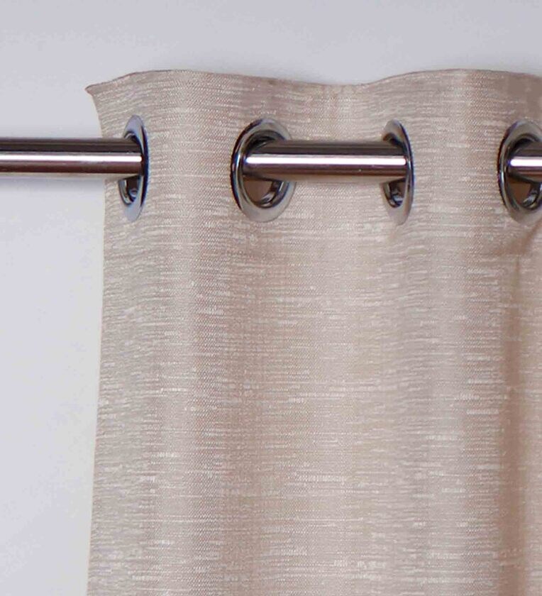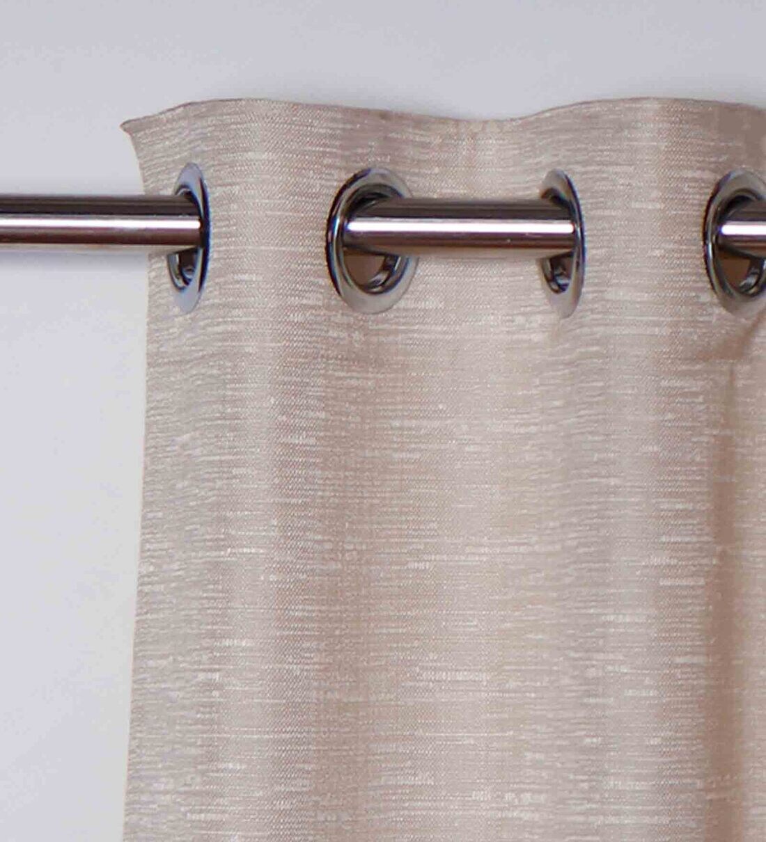 This Off White self textured curtain will add a touch of opulence to any home interior. Made of polyester blend, it is a thick curtain that helps block sunlight. Having eyelet headings, this curtain gives a large, even and naturally soft fold. The simplicity of the fabric has its own charm.