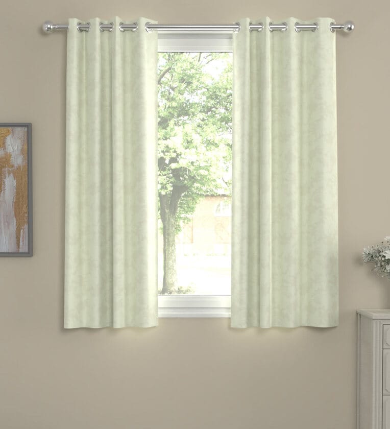 Lime Polyester Floral 5 Ft Semisheer Eyelet 2 Window Curtains