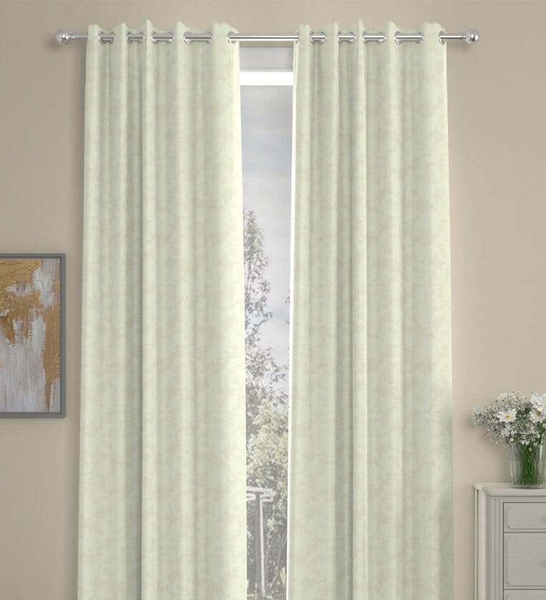 Off White Polyester Traditional 9 Ft Semisheer Eyelet 2 Door Curtains