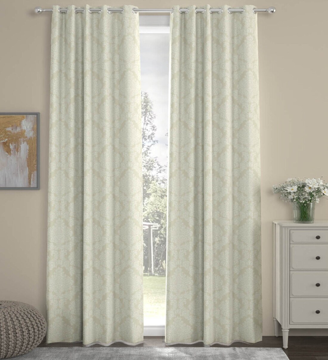 Off White Polyester Traditional 9ft Semisheer Eyelet (2 pc) Long Door Curtains