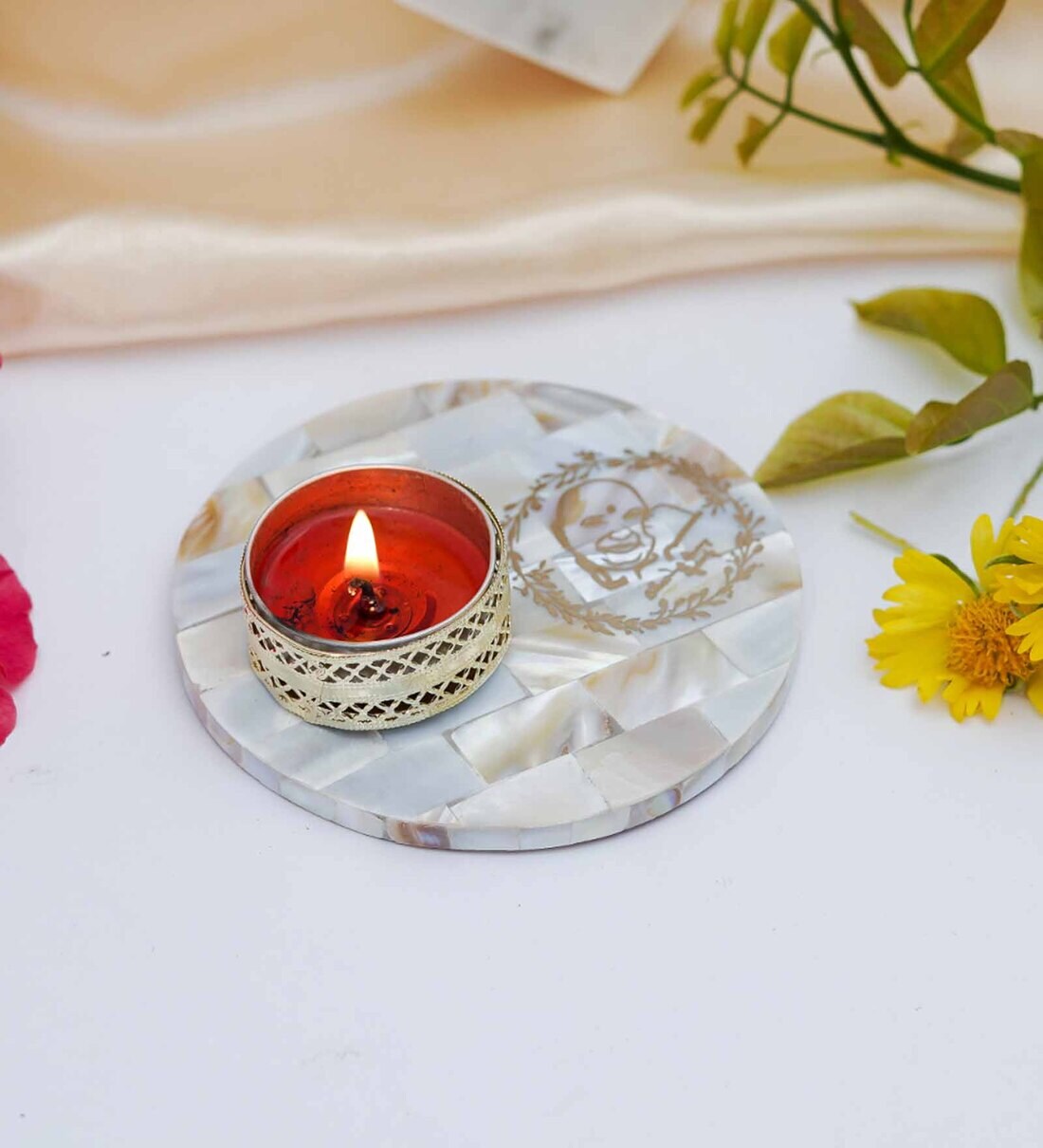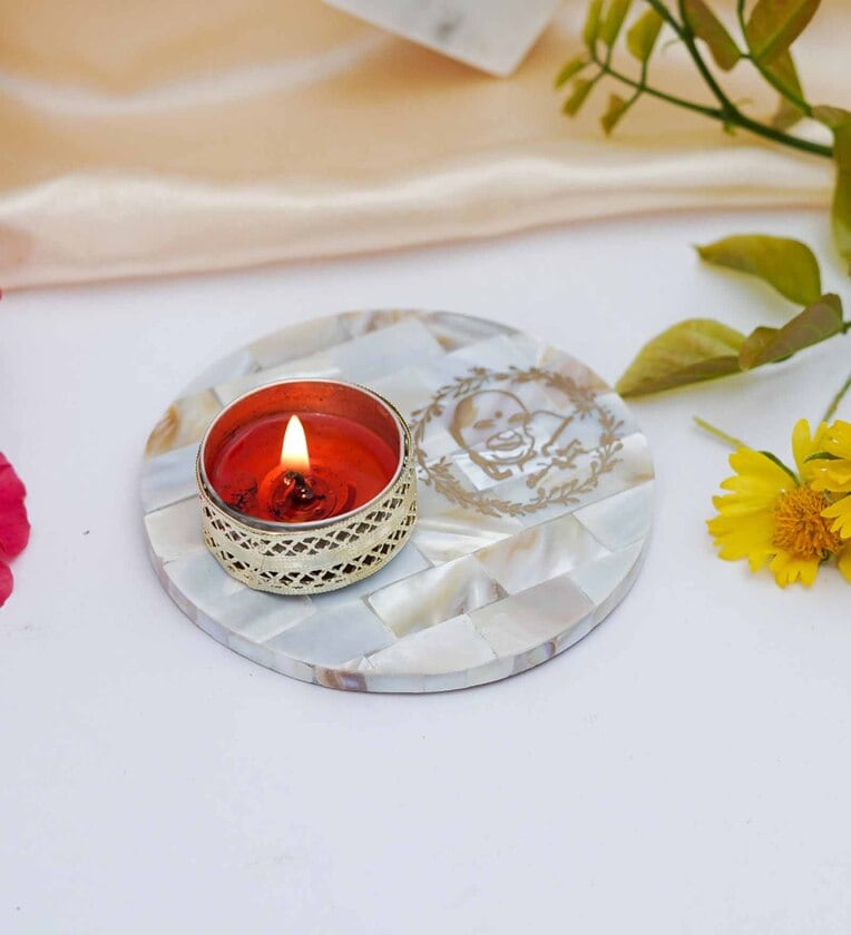 Off White Stone Figurine Tea light Holder