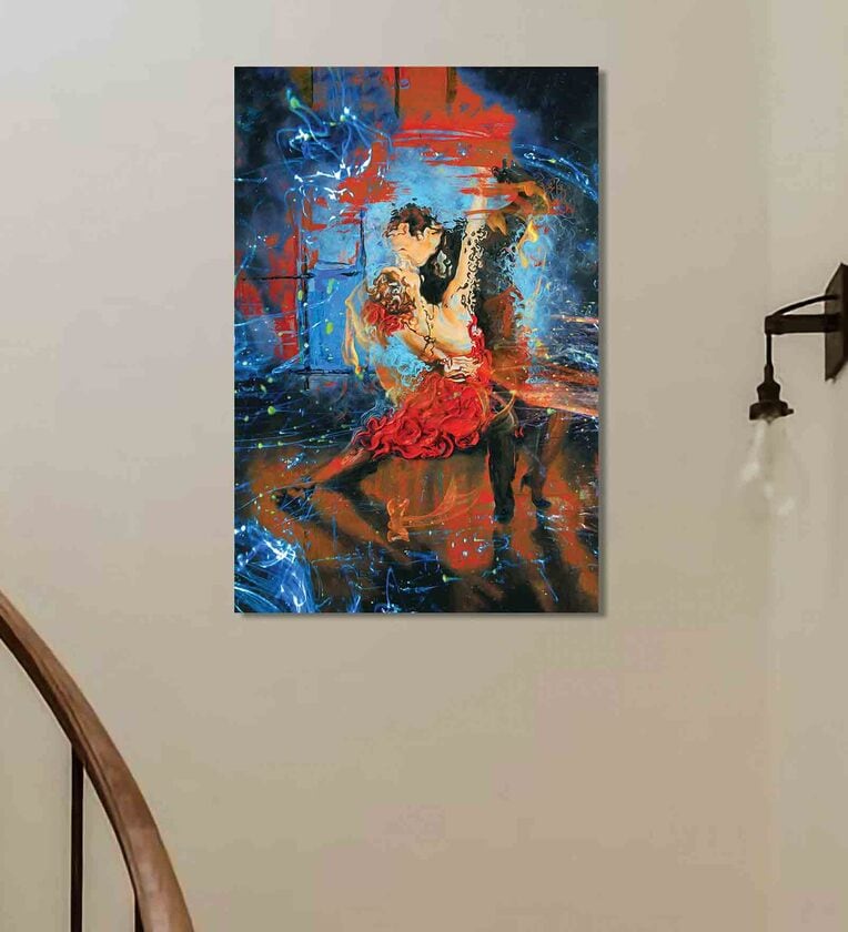 Oil Paint Western Dance Red Canvas Teakwood And MDF Framed Art Print