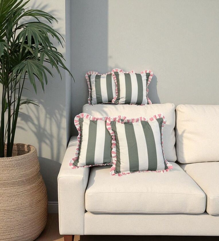 Olive Striped Striped Cotton Ruffle 18x18 inches Cushion Covers Set of 4