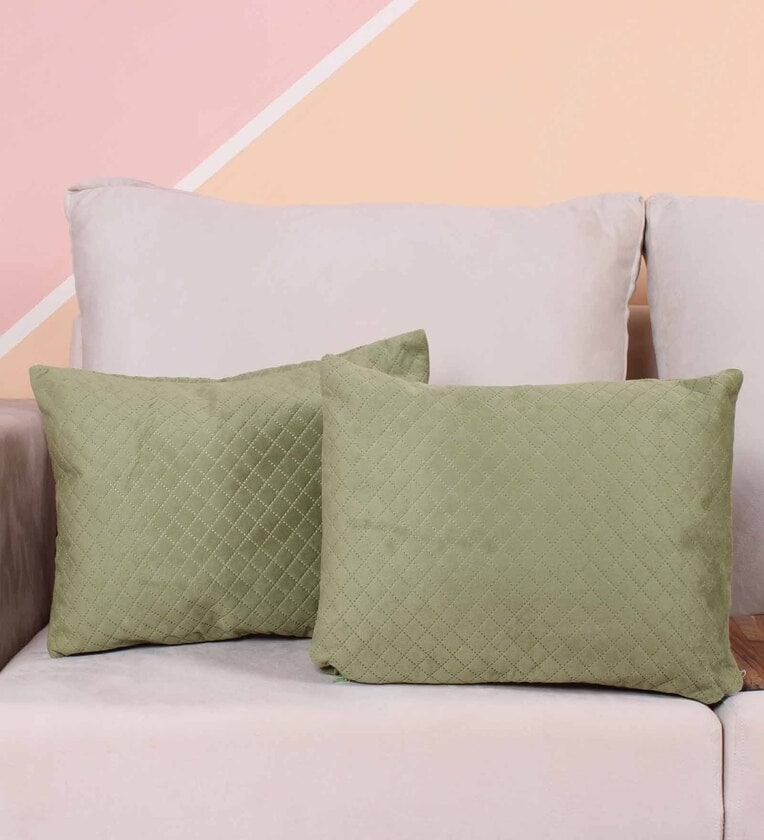Olive Velvet Solids 18x12 inches Cushion Covers (Pack of 2)