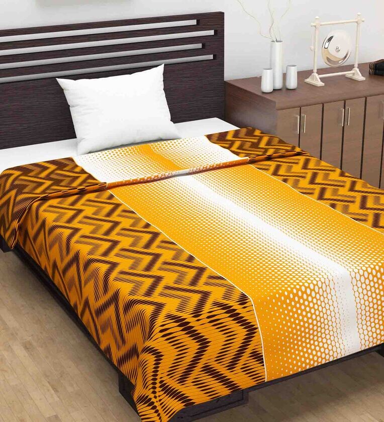 Divine Casa Microfiber Reversible 120 GSM Abstract Print Orange and Brown Single Bed AC Dohar Quilt Blanket