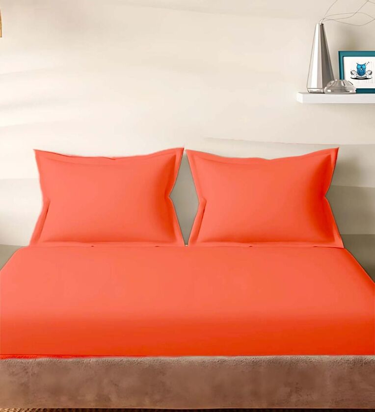 Orange Cotton Solid 210TC Plain Super King Bedsheet with 2 Pillow Covers