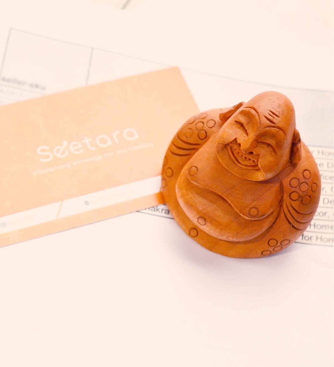 Orange Exquisite Handcarved Kadamwood Laughing Buddha for Joy, Prosperity, and Spiritual Harmony