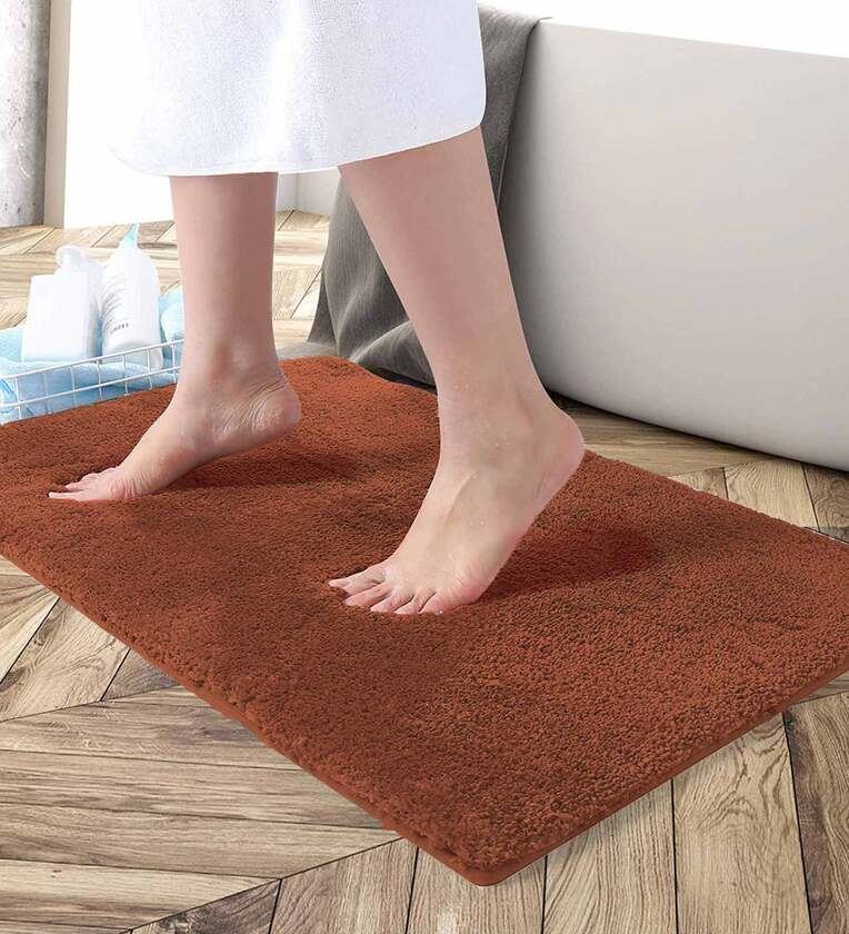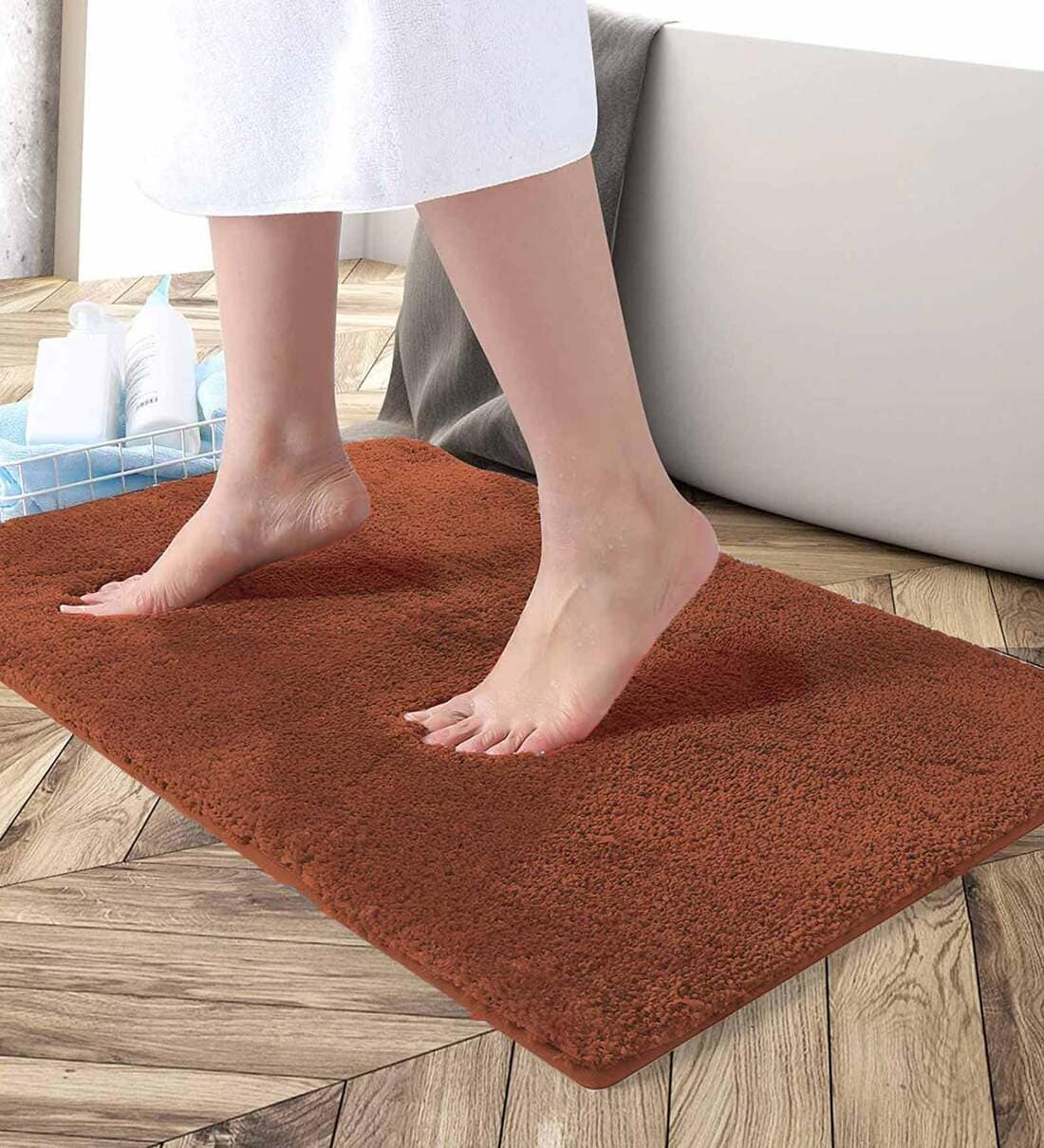 Orange Solid Microfibre 30x18 Inches AntiSkid Bath Mat
