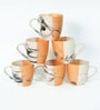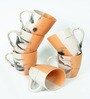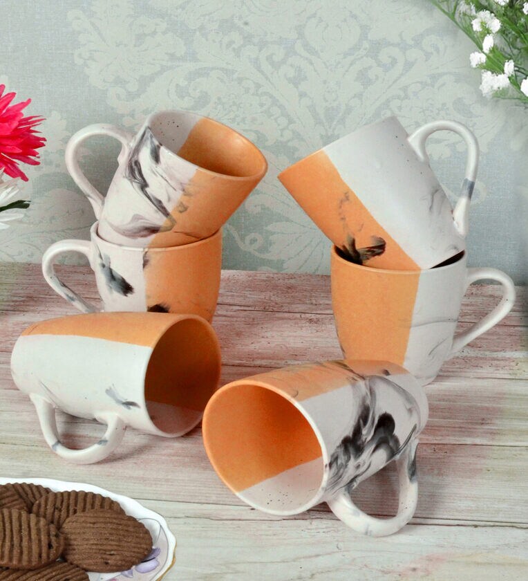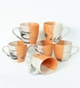 Orange & White Ceramic 290 ml Handcrafted (Set of 6) Coffee Mug