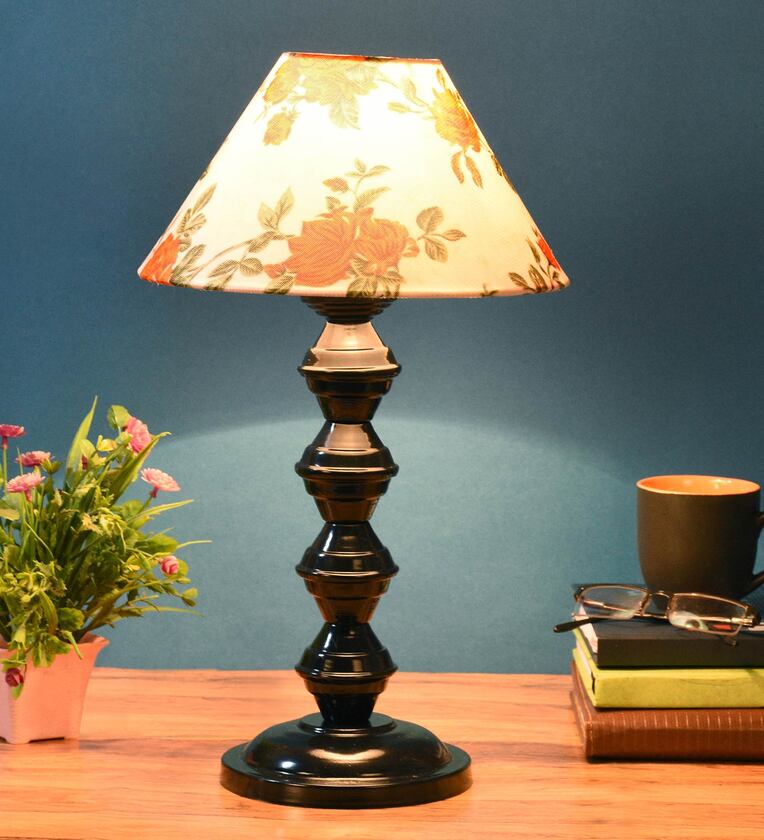 Orange & White Shade Table Lamp With Metal Base