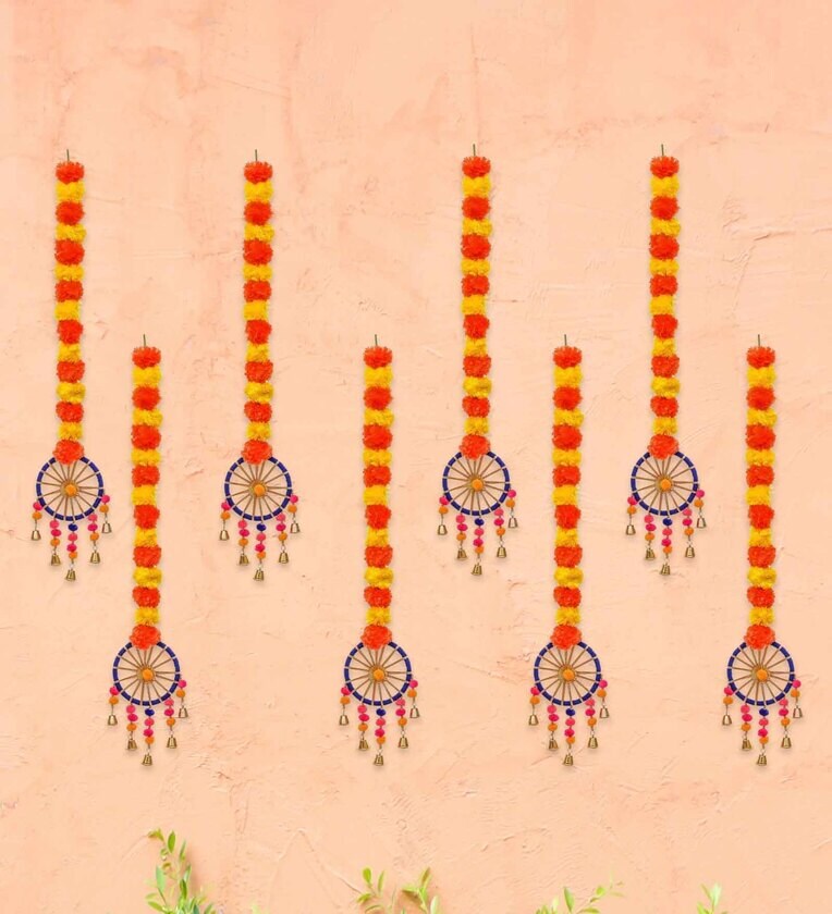 Pack of 8 Artificial Marigold Flowers Hangings with Bangles Ringing Bells