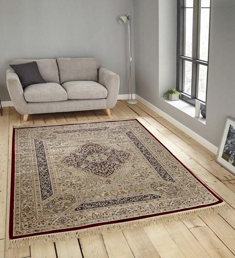 Beige Persian Viscose 5 ft x 7 ft Machine Made Carpet