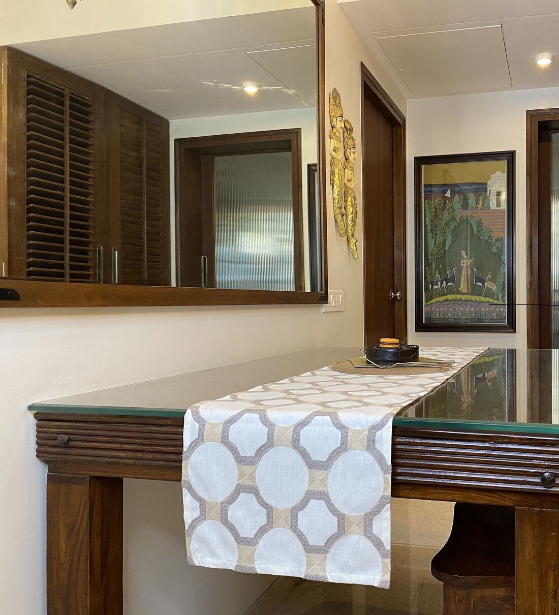Ornamental Beige Cotton (72 x13) Inch Table Runner
