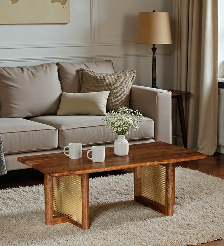 Ortrand Acacia Wood Coffee Table In Natural Finish