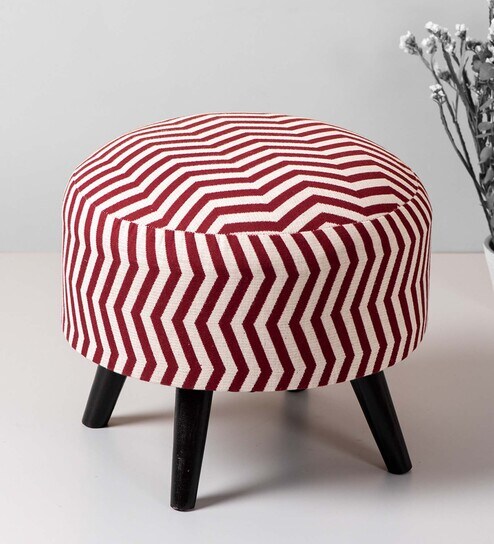 Crest Jacquard Seating Stools in Maroon & White Color